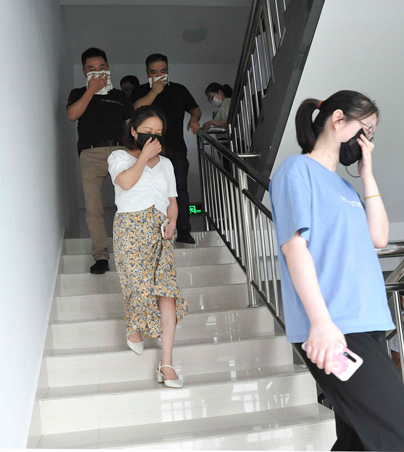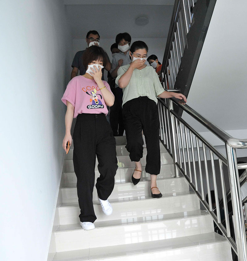 演練中,隨著總指揮指令下達,消防警報響起,樓內所有工作人員迅速、有序撤離,以最快的速度全部疏散至安全區(qū)域。
