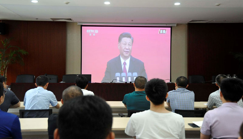 2021年6月29日上午10點(diǎn),保安公司組織黨員領(lǐng)導(dǎo)干部、公司本部全體員工集中收聽(tīng)觀看“七一勛章”頒授儀式。
