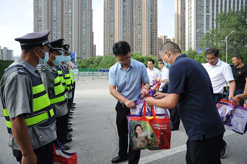 夏日酷暑,烈日炎炎。近日來,南通地區(qū)持續(xù)高溫天氣。城建集團領導則心系著戶外高溫作業(yè)的一線員工,開展了“送清涼、促安全、防疫情”高溫慰問活動。8月3日上午,城建集團黨委書記、董事長張建中,副總經理朱建林、副總經理董新平、工程管理部部長冒俊、辦公室主任萬晶一行在保安公司董事長沈鑫華的陪同下,看望、慰問了戶外高溫作業(yè)的一線保安隊員,向他們送上了集團領導的關懷與問候。