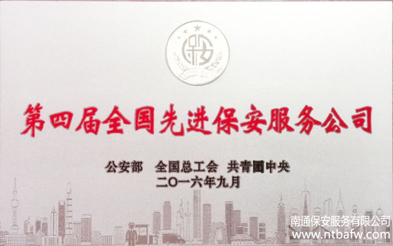 第四屆全國先進(jìn)保安公司——南通市保安服務(wù)有限公司